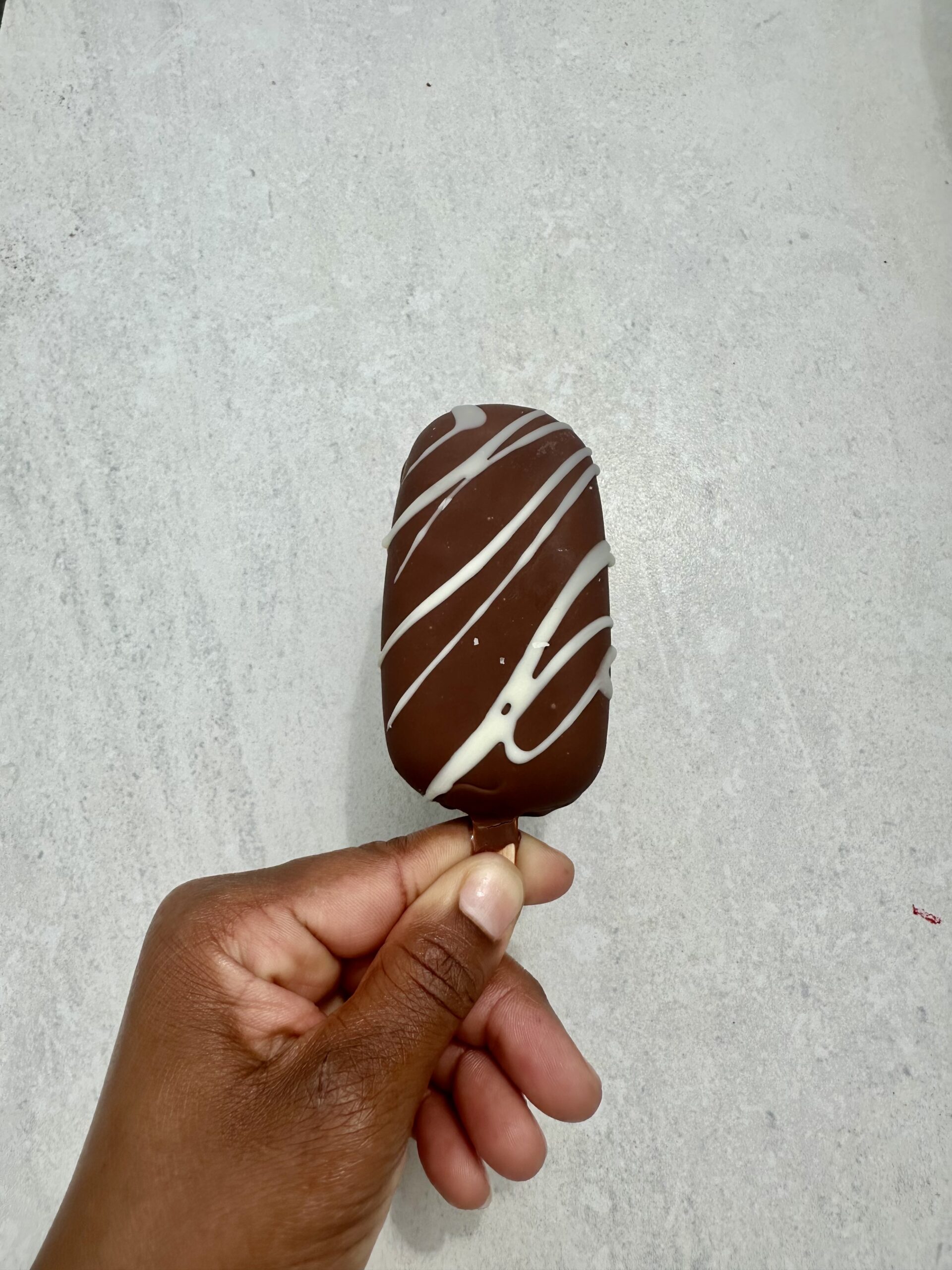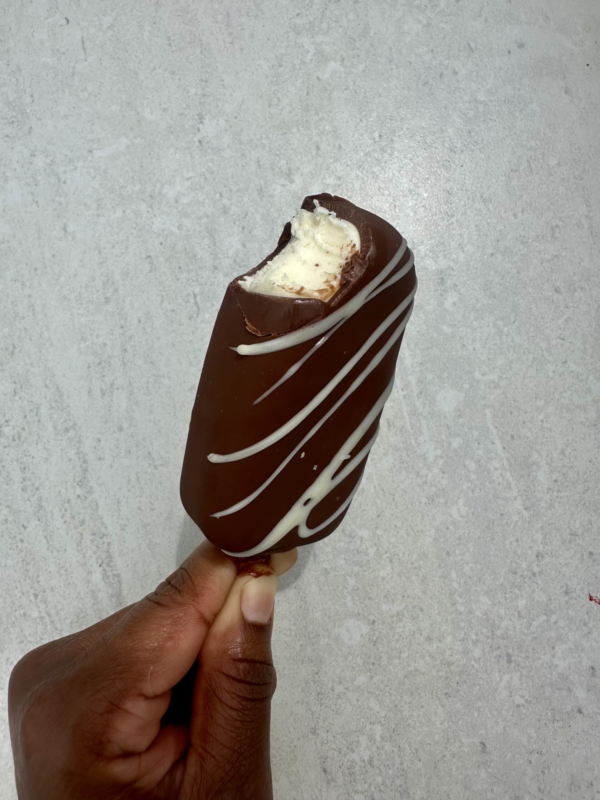 A Vanilla bean ice cream bar covered in a Chocolate Hard shell